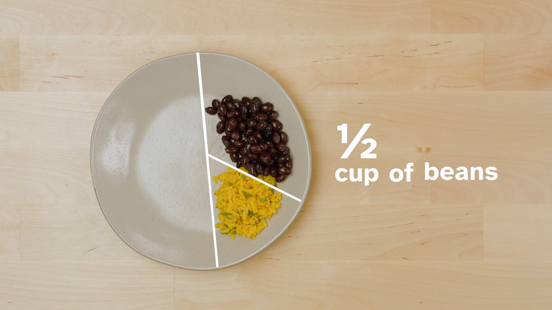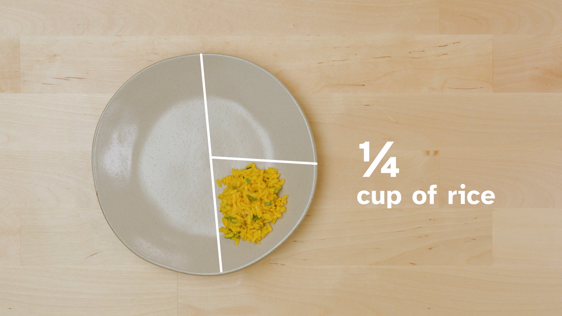 Add ¼ cup cooked rice to your plate. Choose brown rice if you want more fiber and longer-lasting energy.
