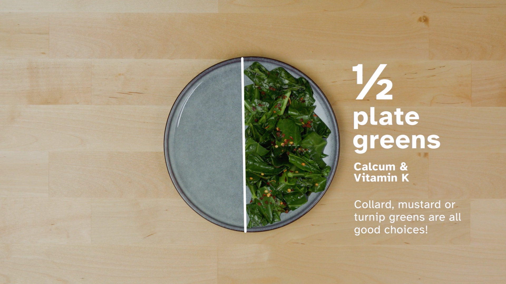 Add ½ plate of greens to your plate. Collard, mustard or turnip greens are all good choices of Calcium and Vitamin K.