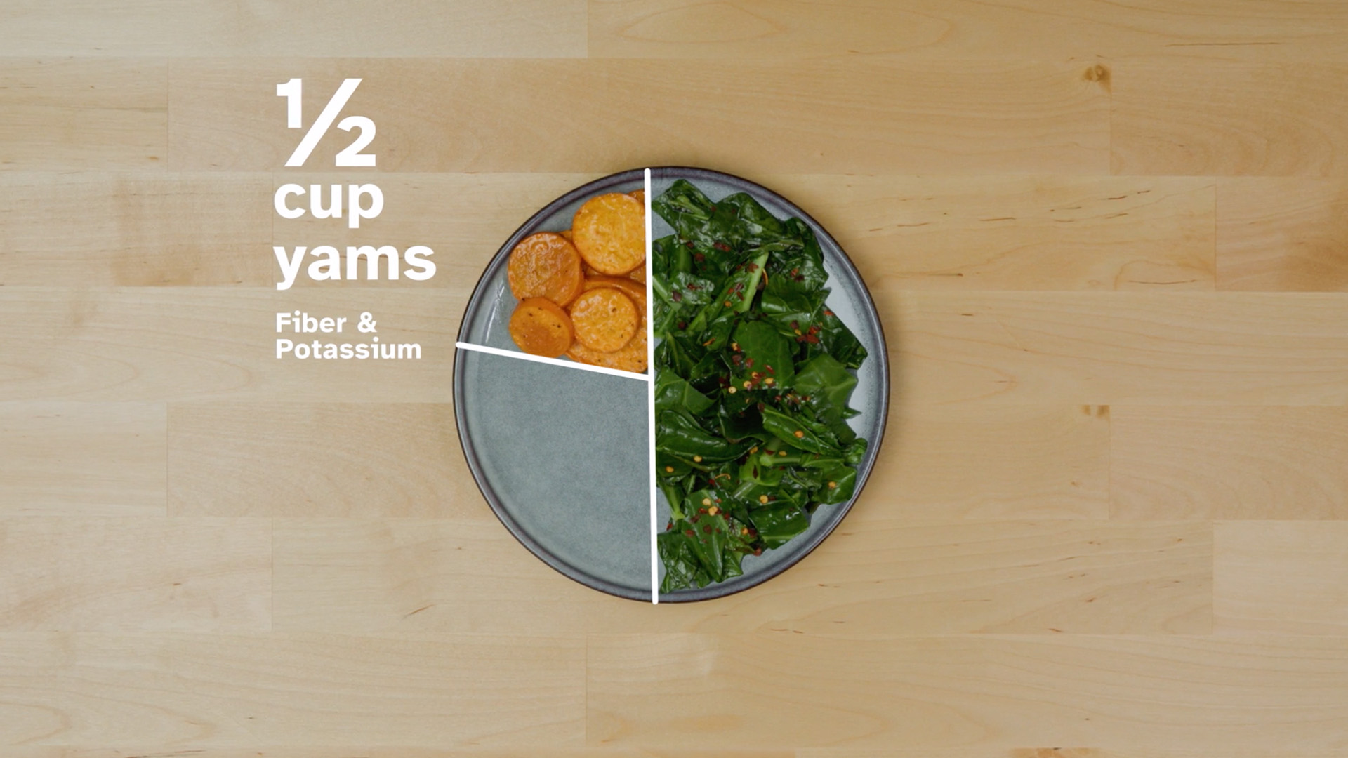 Fill half your plate with cooked greens such as collards, mustard greens or turnip greens.