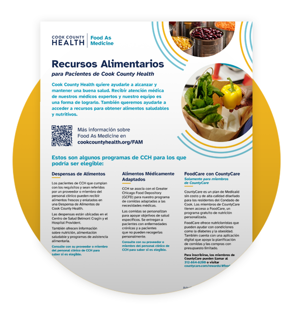 Cook County Health believes access to nutritious food is essential for achieving health equity. Through our Food As Medicine initiative, we connect patients to food resources that support long-term wellness.